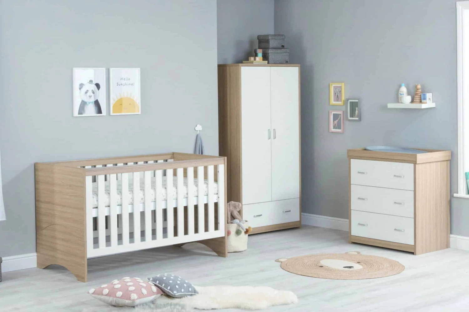Babymore Veni 4 Piece Nursery Room Set – White/Oak