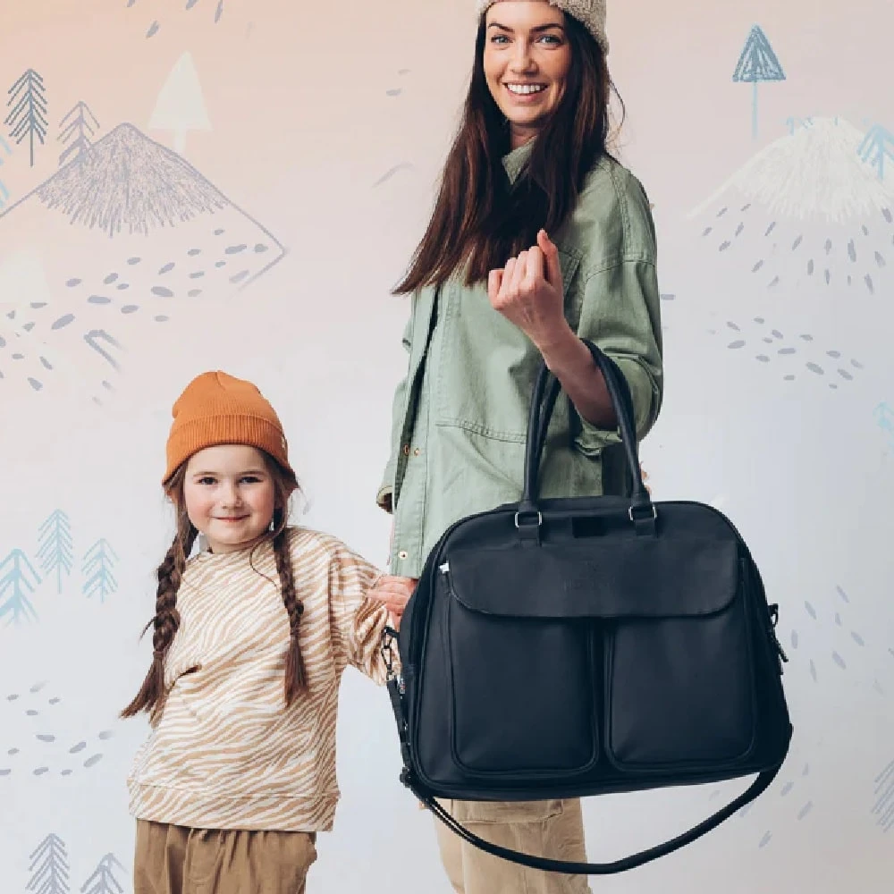 Bizzi Growin Baby Travel Crib Changing Bag Vegan Black is the perfect solution for busy parents on the go, ensuring nap time is convenient and stress free, wherever you may be. The unique fold out crib section is quick and easy to use, perfect for daytime naps and a great changing bag.