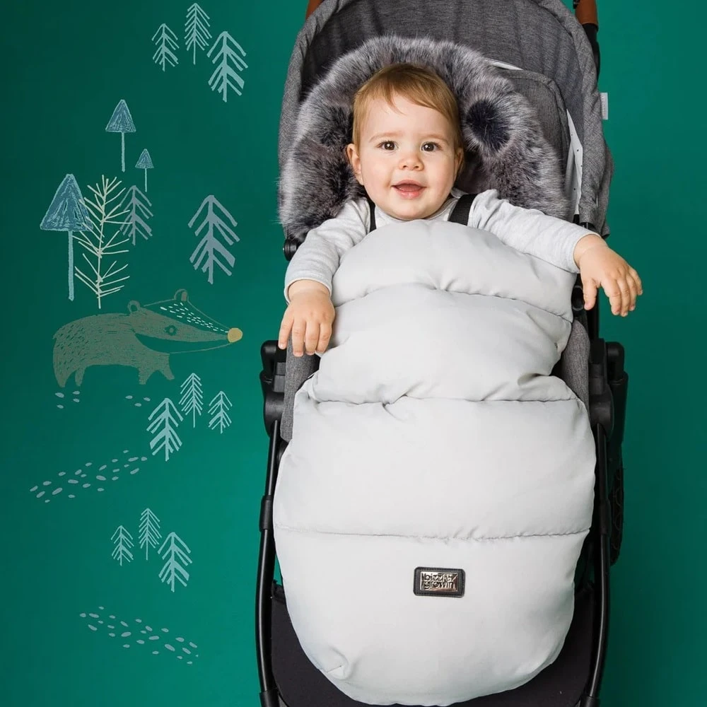 Bizzi Growin Glacier Grey Nanook Footmuff is perfect for keeping your little one warm and snug no matter what the weather throws at you. The foot muff is wind and water resistant, with a gorgeous faux fur collar, ensuring your little one will be nice and warm as well as looking super stylish.