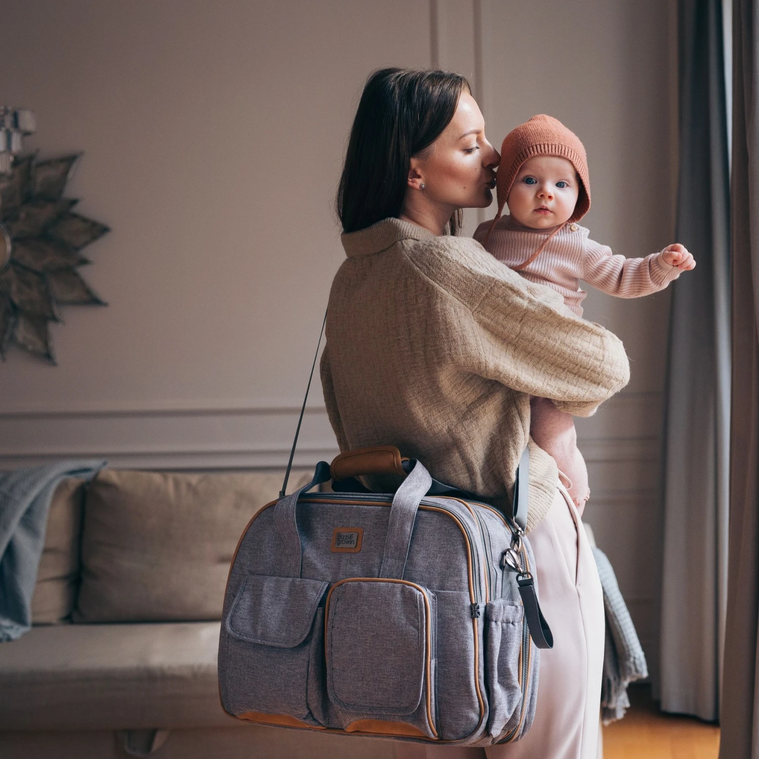 - Several pockets and compartments for organising babyβs and mumβs essentials.