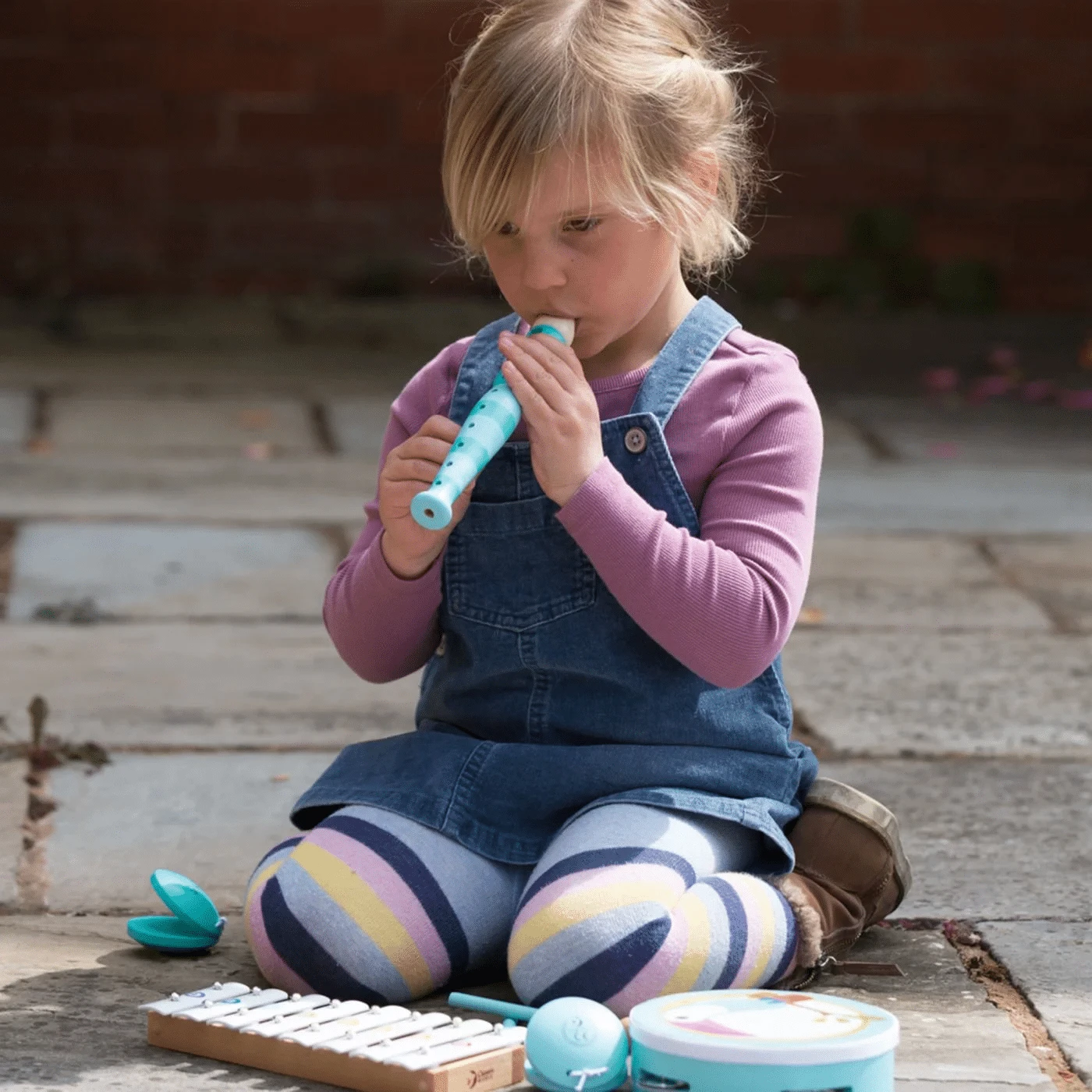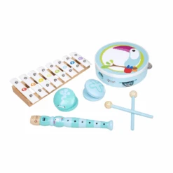 - Set includes: xylophone, flute, tambourine and castanets
