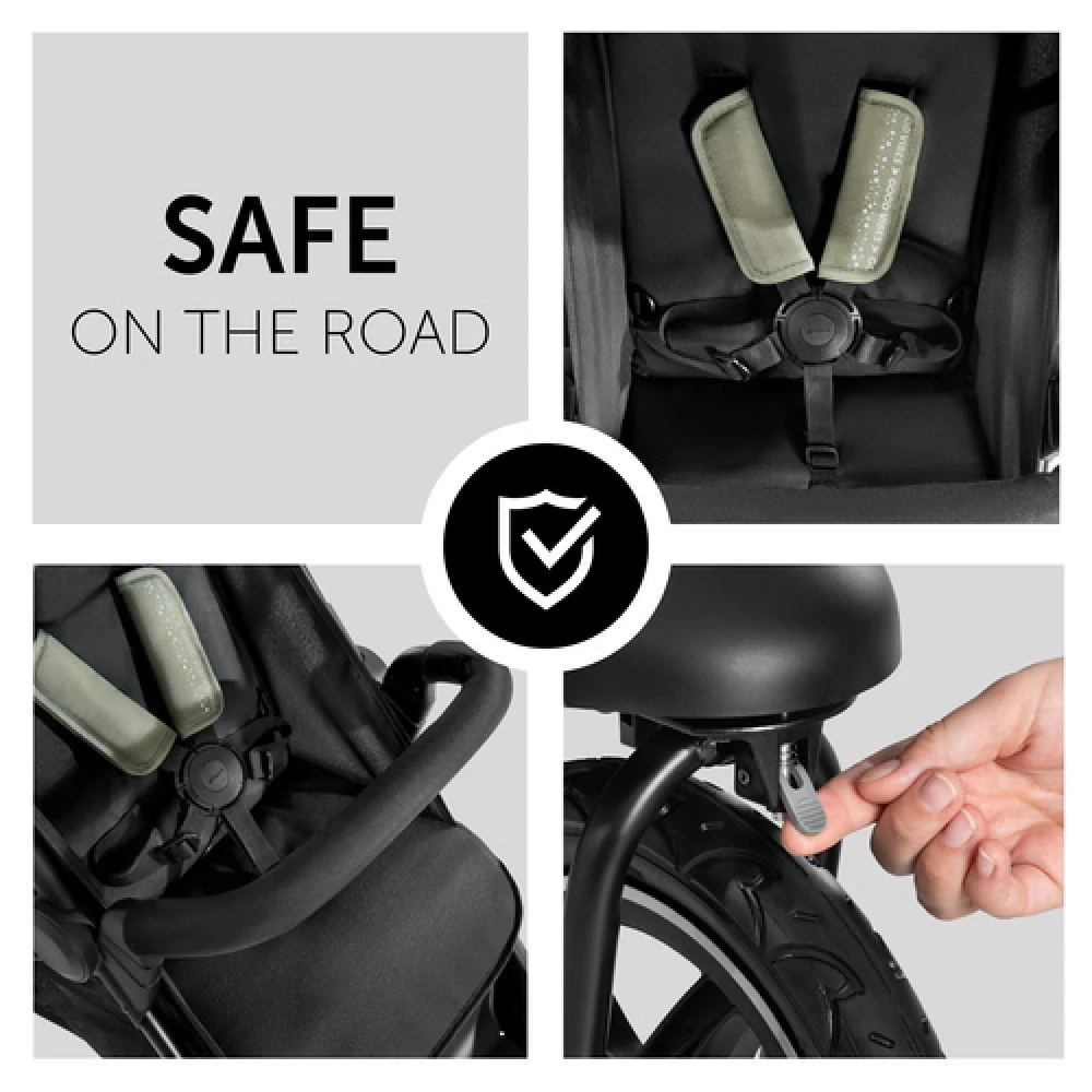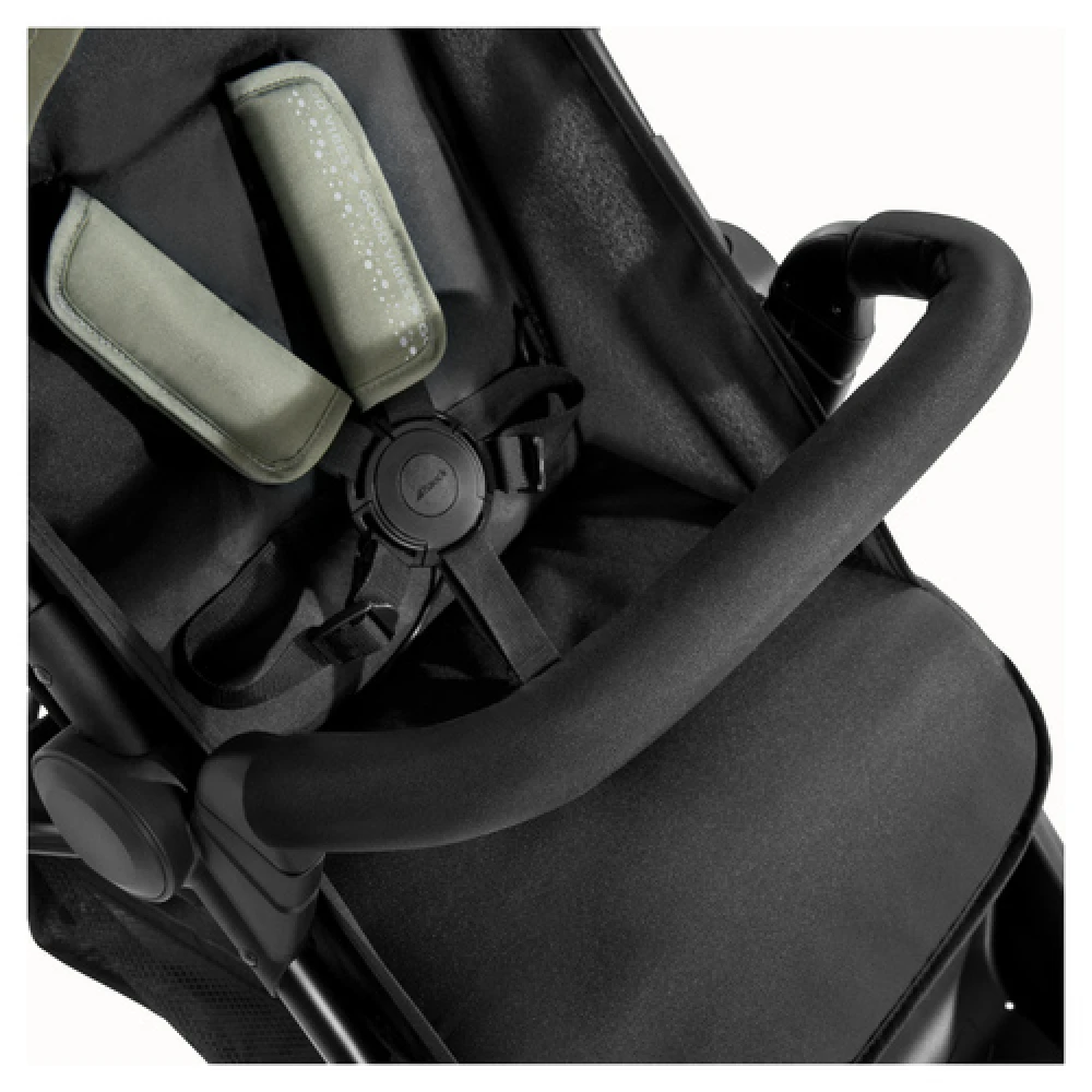 So that you too spend the day comfortably, you can adjust the push handle over 30 cm to your height. For the safety of your sweetheart there is a 5-point harness, a brake and a front bar that can be easily folded to the side for easier boarding.