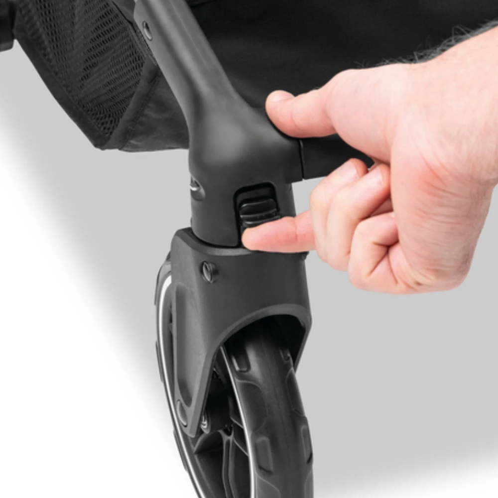 Staying comfortable is the main thing. Sitting or lying down, the pushchair is always in the right position for kids up to 22 kg. The backrest and footrest are easy to adjust.Β With the swivelling safety bar, your child can easily get in and out. The generous sun canopy with viewing window protects your little one.