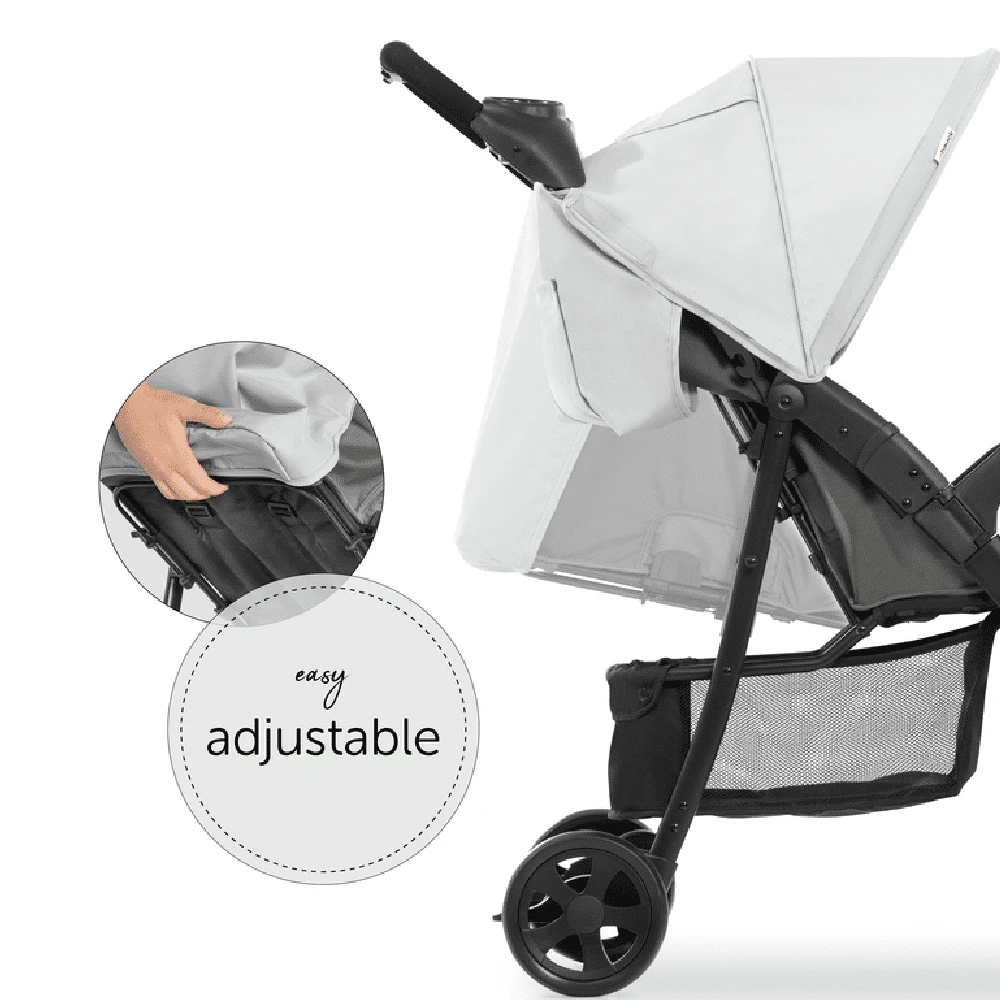 When your little one is tired, adjust the backrest into a lying position, step by step, with just one hand. The footrest is also multi-adjustable. Keep a constant eye on your child through the ventilated viewing window in the canopy. Your little one will always be safe on the move thanks to the padded 5-point harness and the front bumper. The parking brake reliably prevents the buggy from moving while you take a break.
