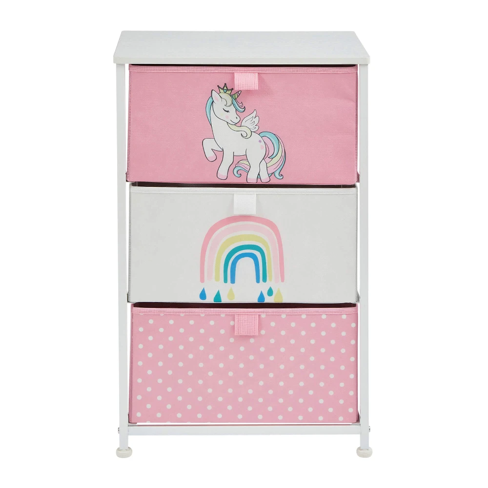- Drawers are supplied in 3 complementing designs – unicorn, rainbow, and polka dots.
