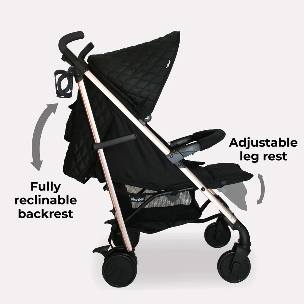 My Babiie Plus Stroller Quilted Black design combines the style and function you expect from a super talented mum. Tough enough to take everywhere with you and use everyday, the lightweight aluminium umbrella fold stroller is packed with features to make using it as comfortable for you and your little as possible.