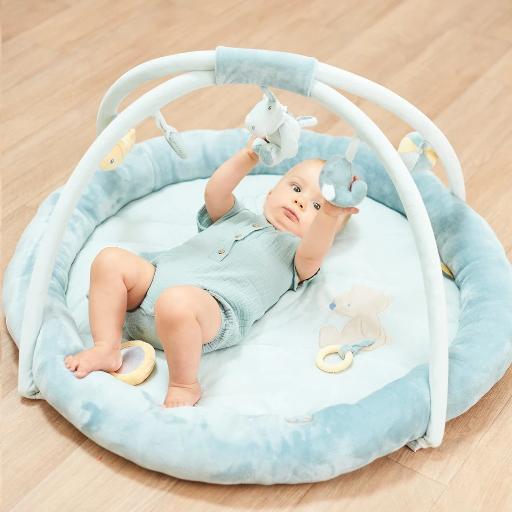 Within the play gym there are lots of interesting noises and textures. It is soft and slightly padded so that it softly cushions your little one.