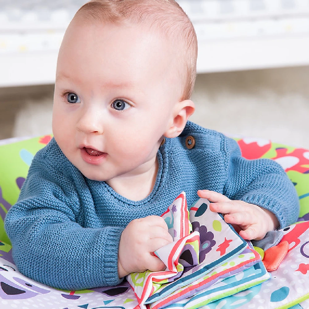 Suitable from nine months, your baby will love the soft fabrics and colourful designs. With its unique inflatable ring seat with detachable Velcro play tray, it is guaranteed to keep your little ones entertained with attached flower mirror and story book toys.